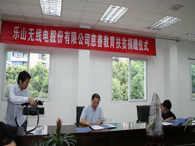 2007年9月13日下午2點(diǎn),在公司辦公大樓一樓會議室內(nèi)舉行的“樂山無線電股份有限公司慈善教育扶貧捐贈儀式”上,金口河區(qū)教科局局長陳懷全一行人與我公司鄭重地簽下了捐贈協(xié)議,接受了我公司為支援民族地區(qū)教育用于修建金口河區(qū)和平彝族鄉(xiāng)鯉魚浩小學(xué)所捐贈的25萬元資金。