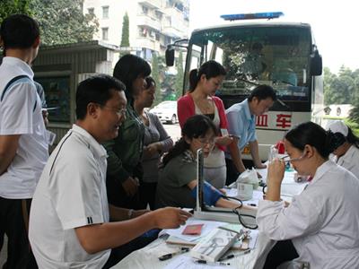 2009年4月23日,樂山市中心血站的采血車開到我公司醫(yī)務(wù)室門口,為公司參加無償獻(xiàn)血的員工體檢、化驗(yàn)以及采血。