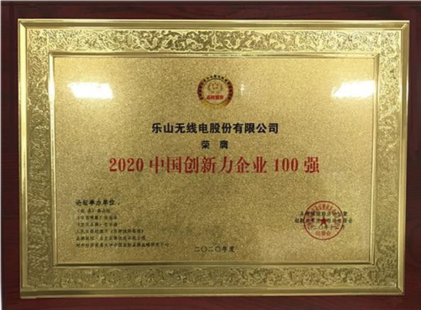 公司榮獲2020中國創(chuàng)新力企業(yè)100強