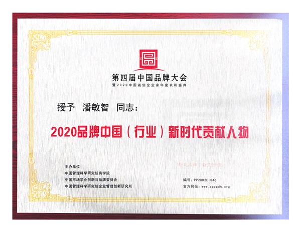祝賀潘董榮為2020品牌中國(行業(yè))新時代貢獻人物