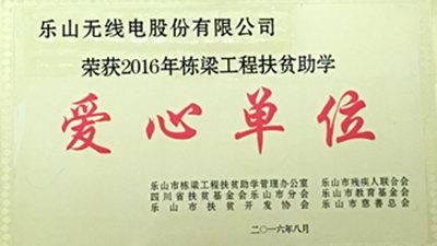 近日,四川省扶貧基金會(huì)樂山市分會(huì)、樂山市扶貧開發(fā)協(xié)會(huì)、樂山市棟梁工程扶貧助學(xué)管理辦公室一行三人專程來到樂山無線電股份有限公司,向公司頒發(fā)了“2016年棟梁工程扶貧助學(xué)愛心單位”的獎(jiǎng)牌及榮譽(yù)證書。據(jù)悉,四川和邦投資集團(tuán)有限公司、福華集團(tuán)、四川恒邦集團(tuán)、黑竹溝集團(tuán)、樂山電力股份有限公司、宜賓天原集團(tuán)馬邊長和電力公司等來自樂山市、宜賓市和成都市的23家單位獲得2016年“棟梁工程·扶貧助學(xué)”愛心單位獎(jiǎng)牌和榮譽(yù)證
